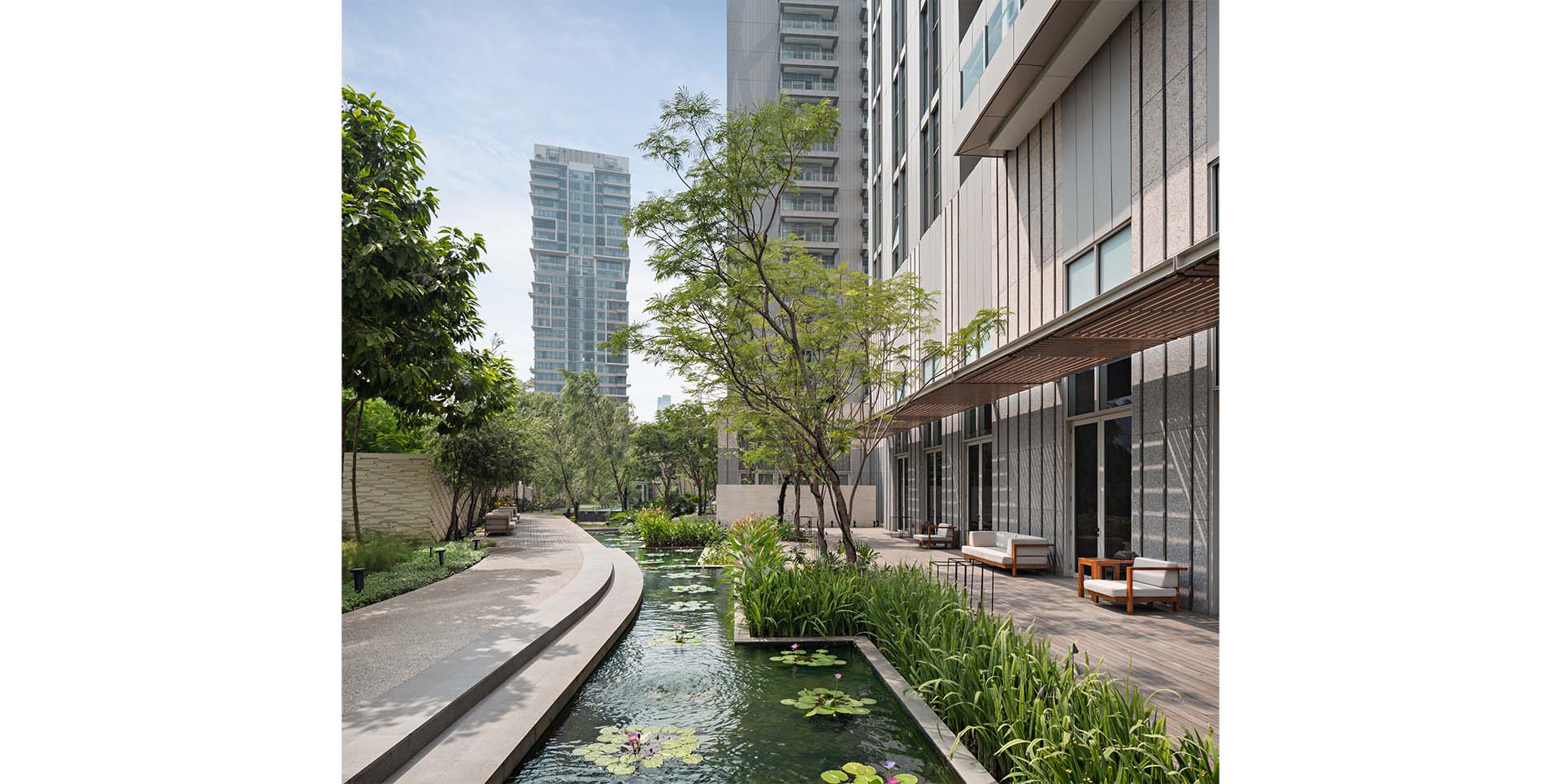 Located in the Golden Triangle of Jakarta, Indonesia’s capital city, this premier twin tower residential complex is sited in a lush two-acre tropical garden setting. A single generous motor court unifies arrival to the project with one lobby for each tower and a wide range of social and recreational amenities on the ground floor. Direct and personalized vertical access is provided from the basement parking floors to the ground level and to residential floors that comprise a total of 300 residences. The buildings’ exterior architecture is finished in natural stone and glass with broad balconies adjacent to living rooms. The roof is reserved for hospitality and social functions that enjoy skyline views.